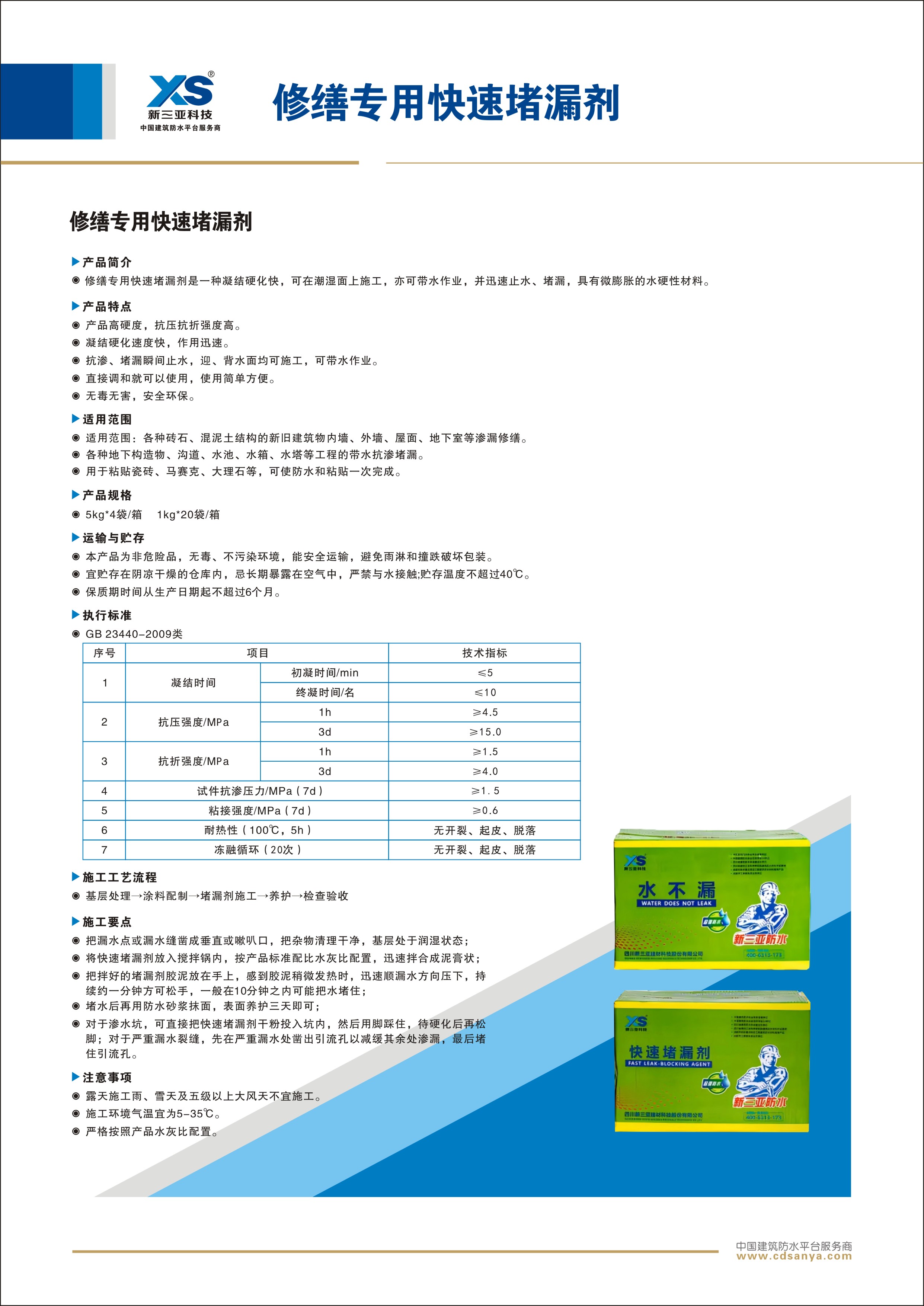 | 產(chǎn)品特點: 1、抗?jié)B、 堵漏瞬間止水、 迎、 背水面均可施工。 2、堵漏速度快、 強度高、 有微膨脹性, 抗?jié)B性高。 3、使用簡單方便,加水調(diào)和好即用。 4、無毒無害, 可用于泳池、魚池等工程。 5、固化時間短,可用于基層修補填充等部。 參考用量:1mm:2~2.5kg/m 2(具體因基面粗糙度而定) |  |