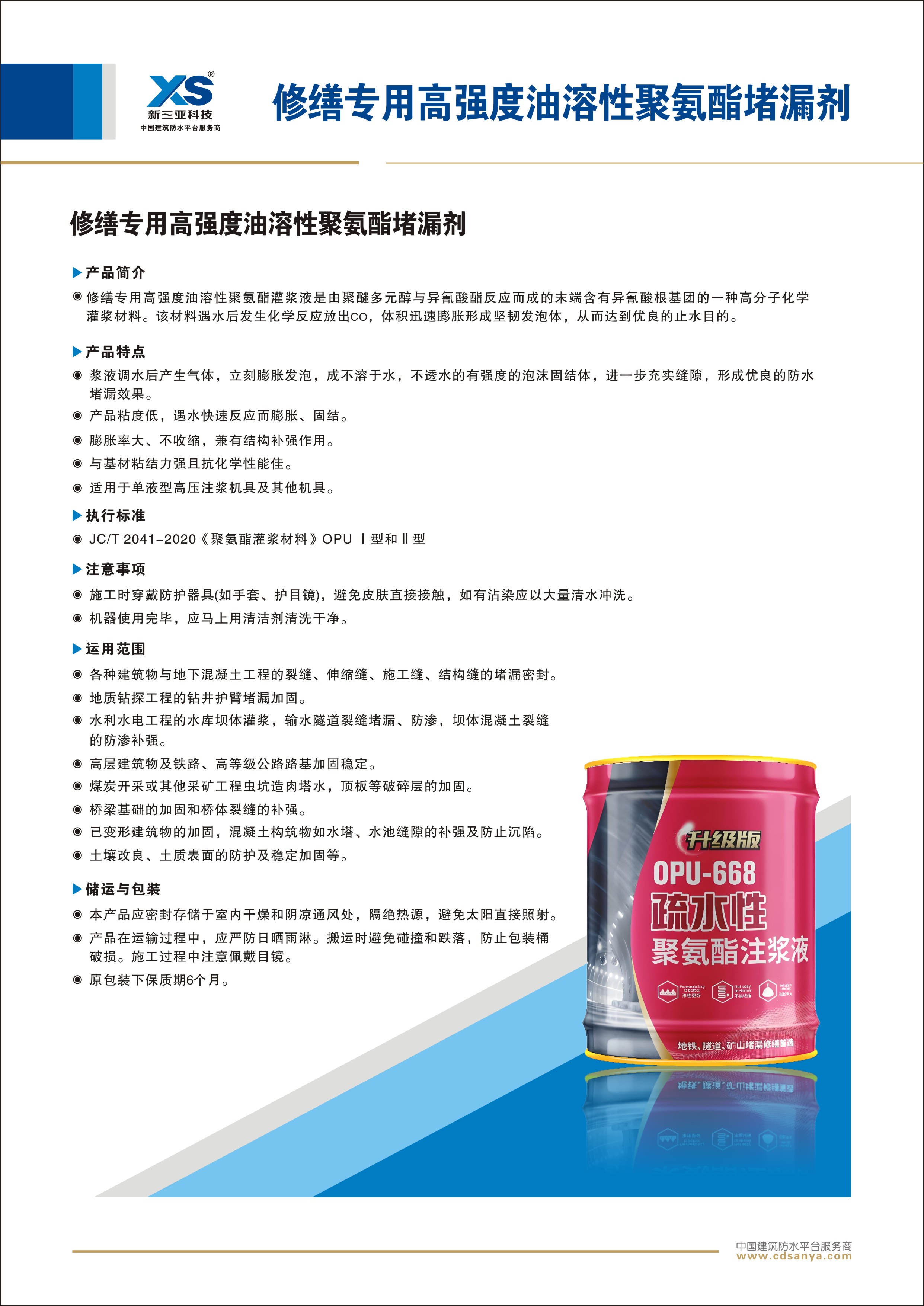 | 高強(qiáng)度油溶性聚氨酯堵漏劑(Ⅱ型 疏水性) | |